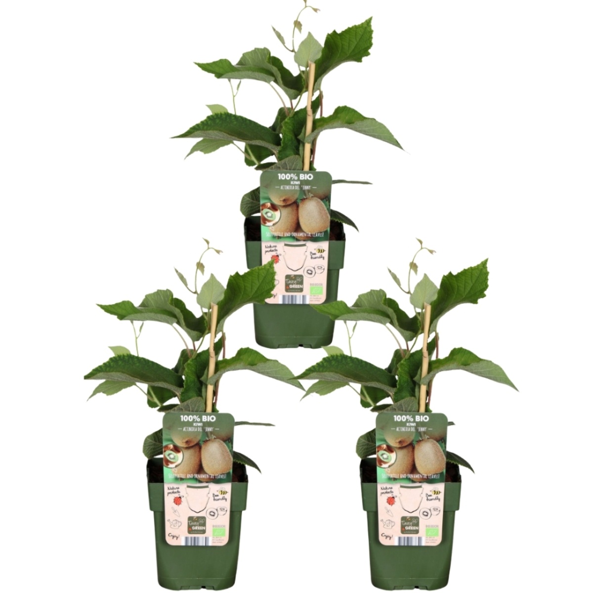 Geniet van verrassend fruit uit eigen tuin met de NatureNest bio kiwi-bessenplant. Deze set van 3 klimplanten zorgt voor een weelderige groei, sierlijk groen en een heerlijke oogst van kleine kiwi’s.
