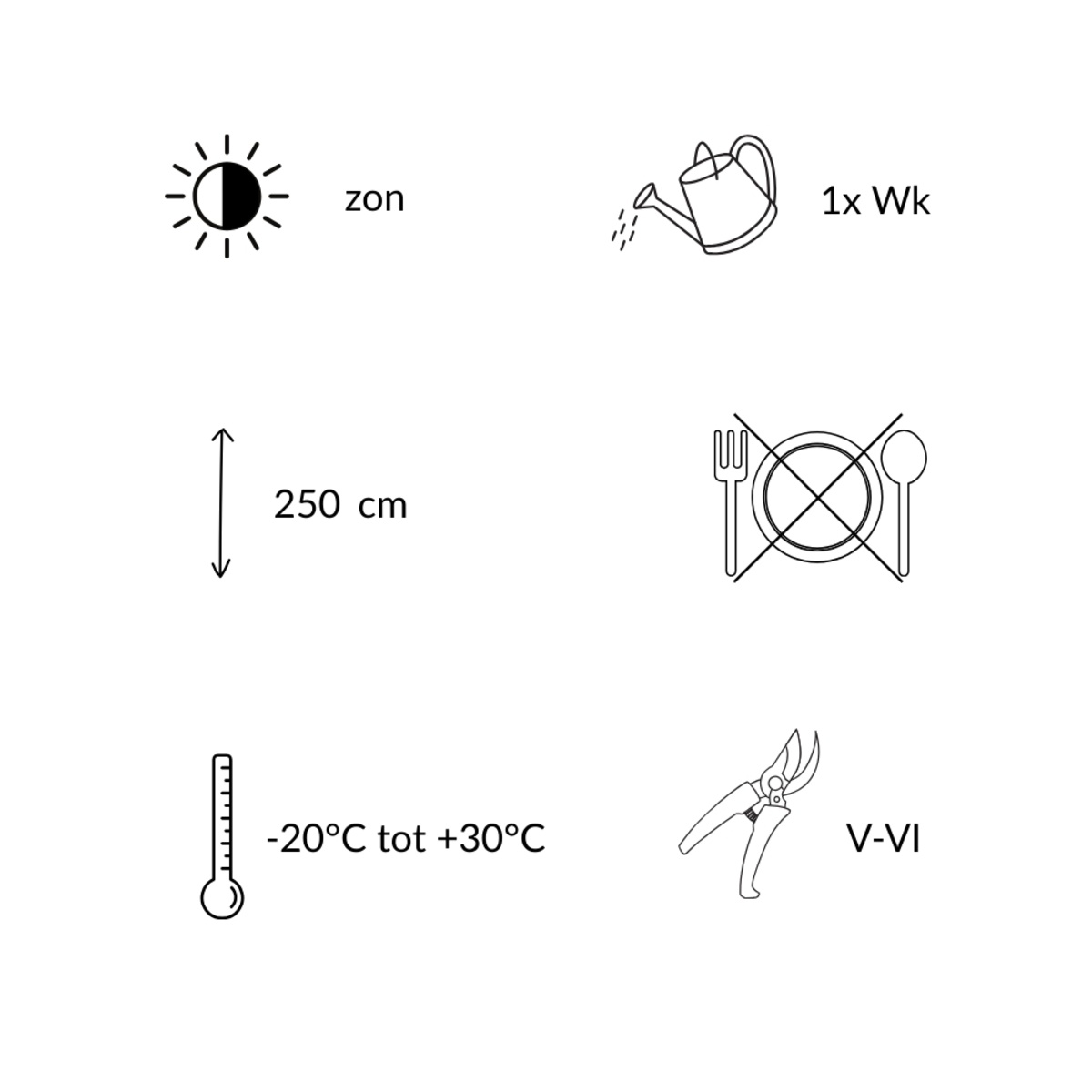 • Volgroeide hoogte: circa 250 cm