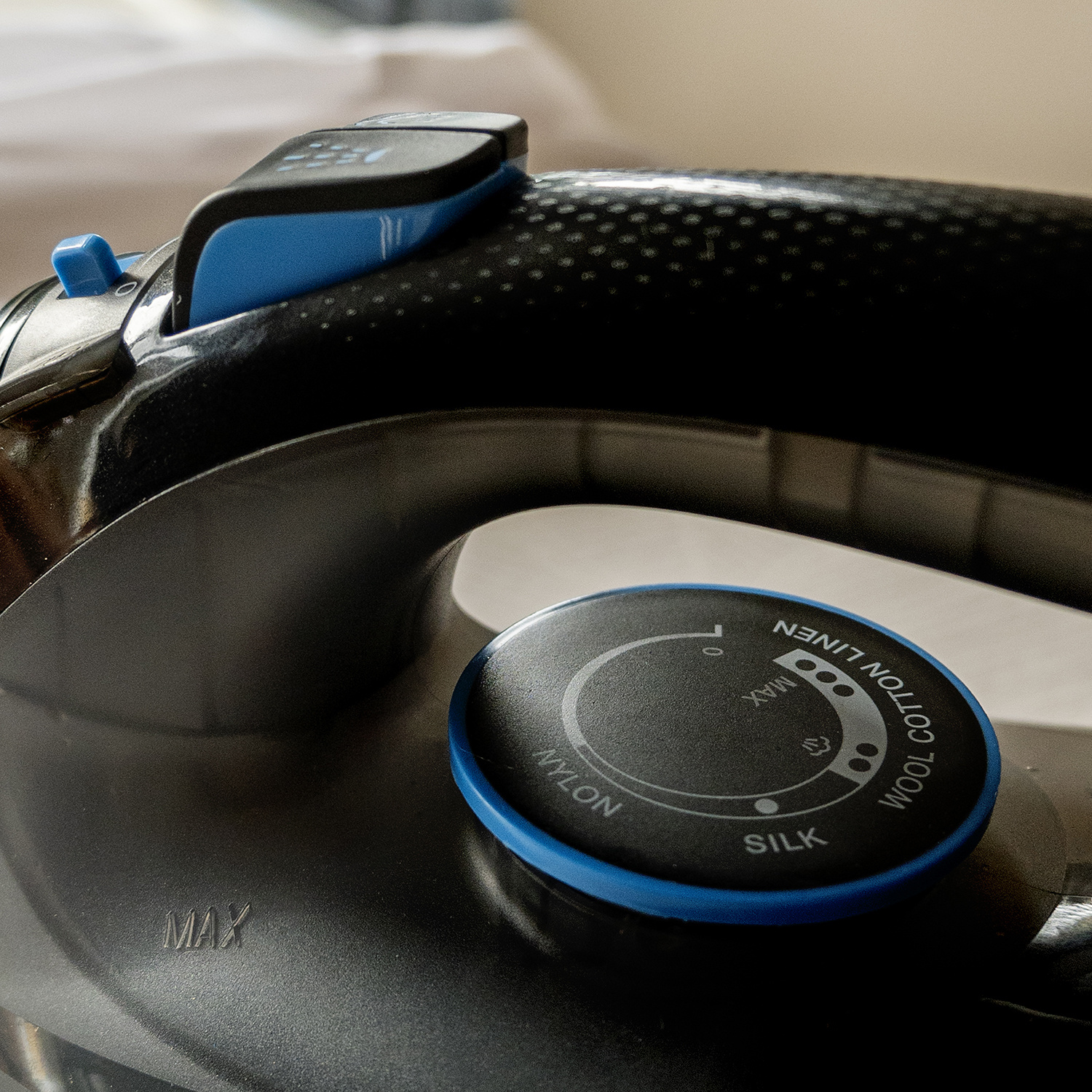 De hoogwaardige antikleef strijkzool glijdt moeiteloos over alle stoffen, zonder te blijven haken of vlekken achter te laten. Zo strijkt u met vertrouwen en behaalt u perfecte resultaten op elk type textiel.