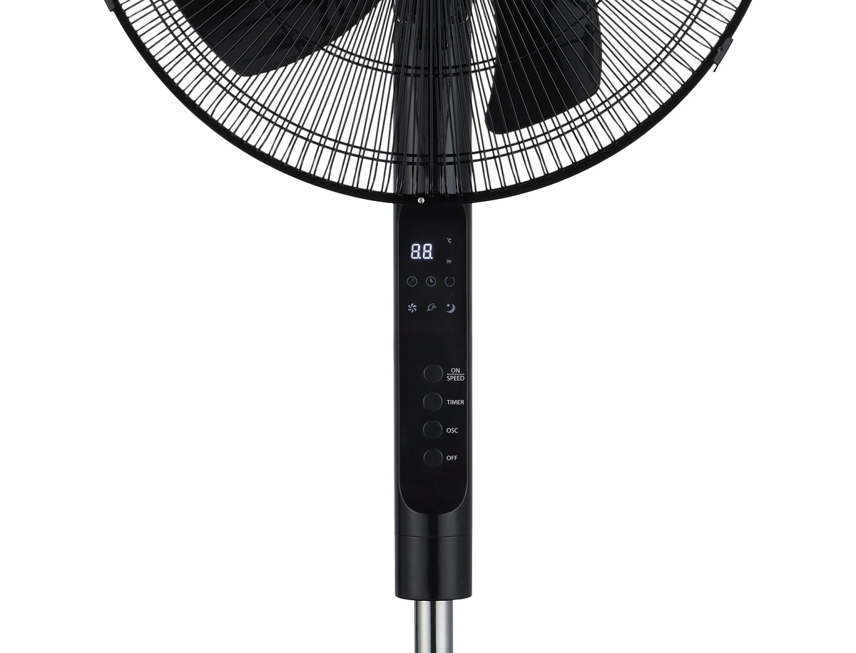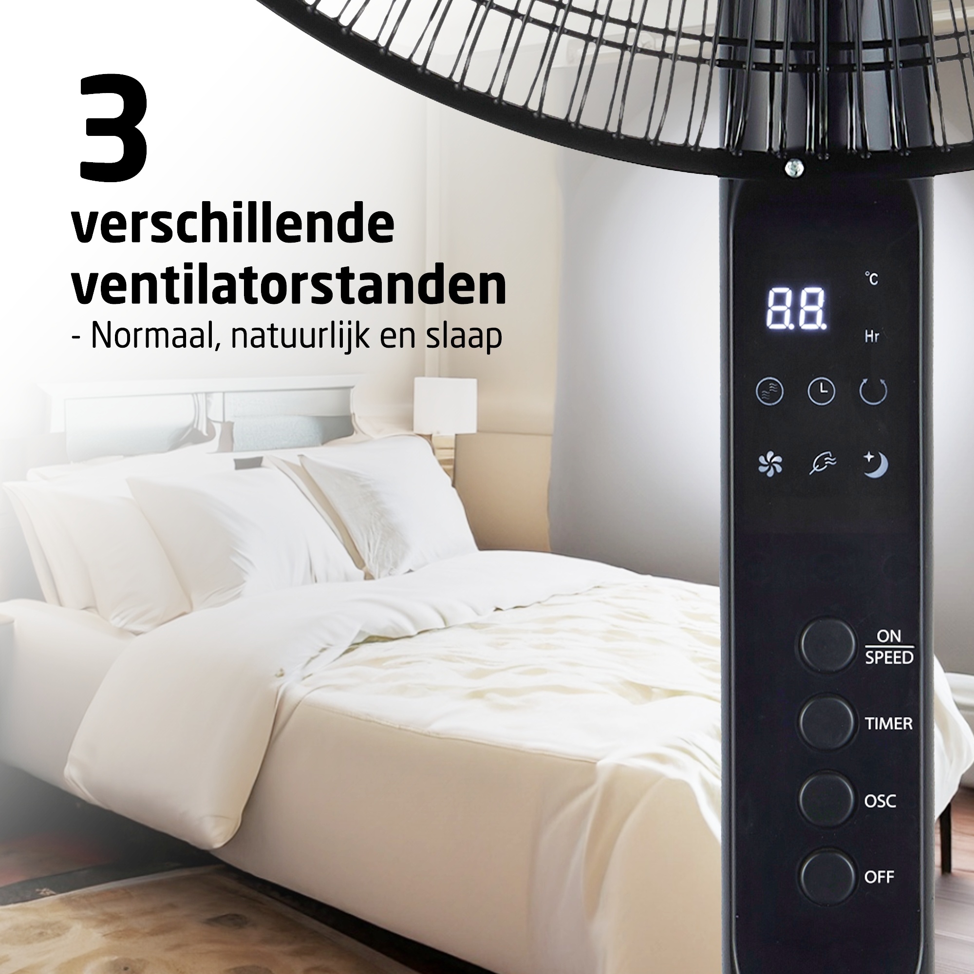Met enkele simpele gebruiksknoppen schakelt u gemakkelijk tussen ventilatorsnelheden en stelt u de ventilator helemaal naar wens in. De flexibele statiefventilator kan door iedereen en in elke ruimte toegepast worden, ook via de bijgeleverde afstandsbediening