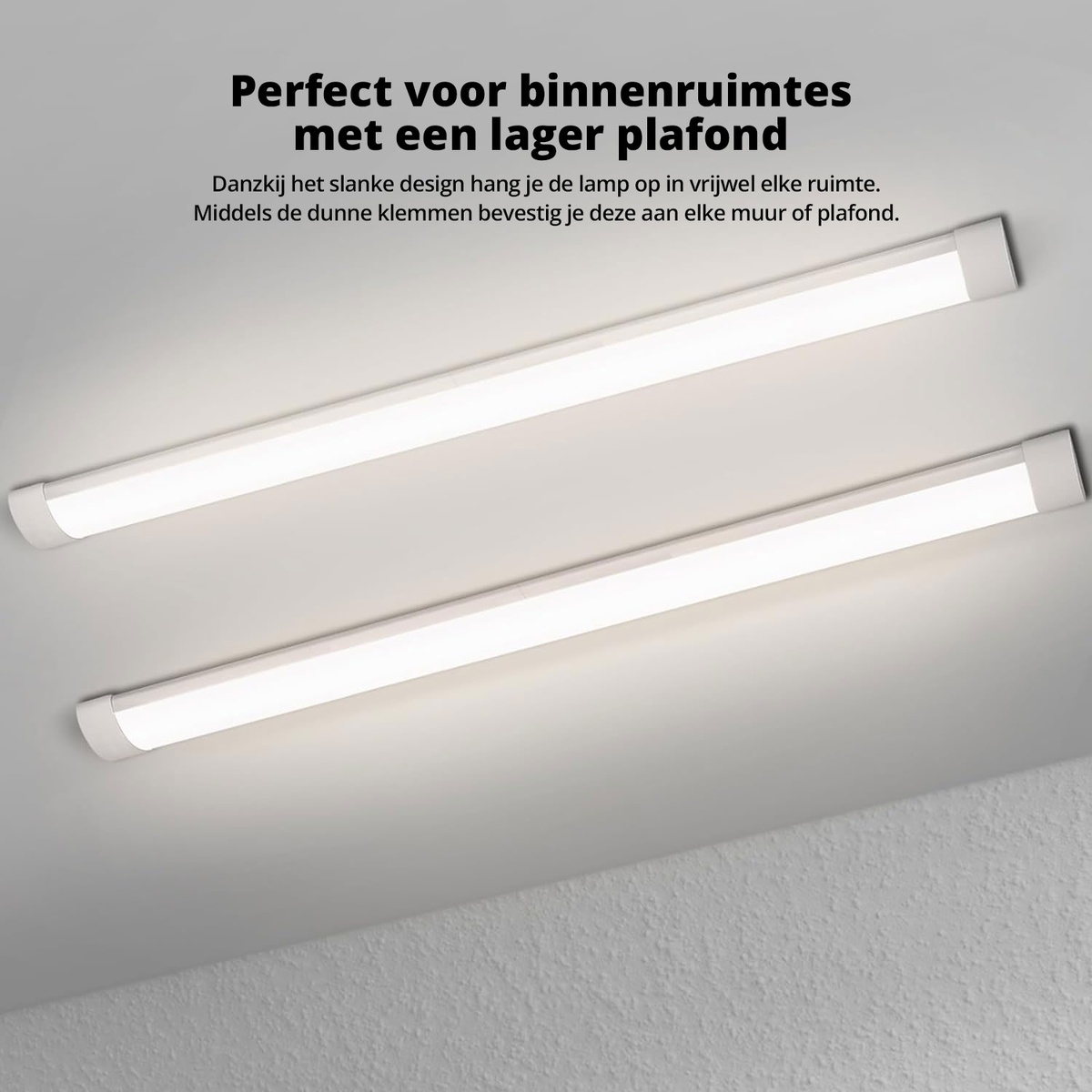 Hét energiezuinige alternatief voor TL-verlichting is deze LED Batten Verlichting van FlinQ. Met de LED Balken bespaart u tot wel 60% op uw energierekening! Met maar liefst 196 Samsung LED’s per balk en 50.000 branduren is de lamp enorm duurzaam!