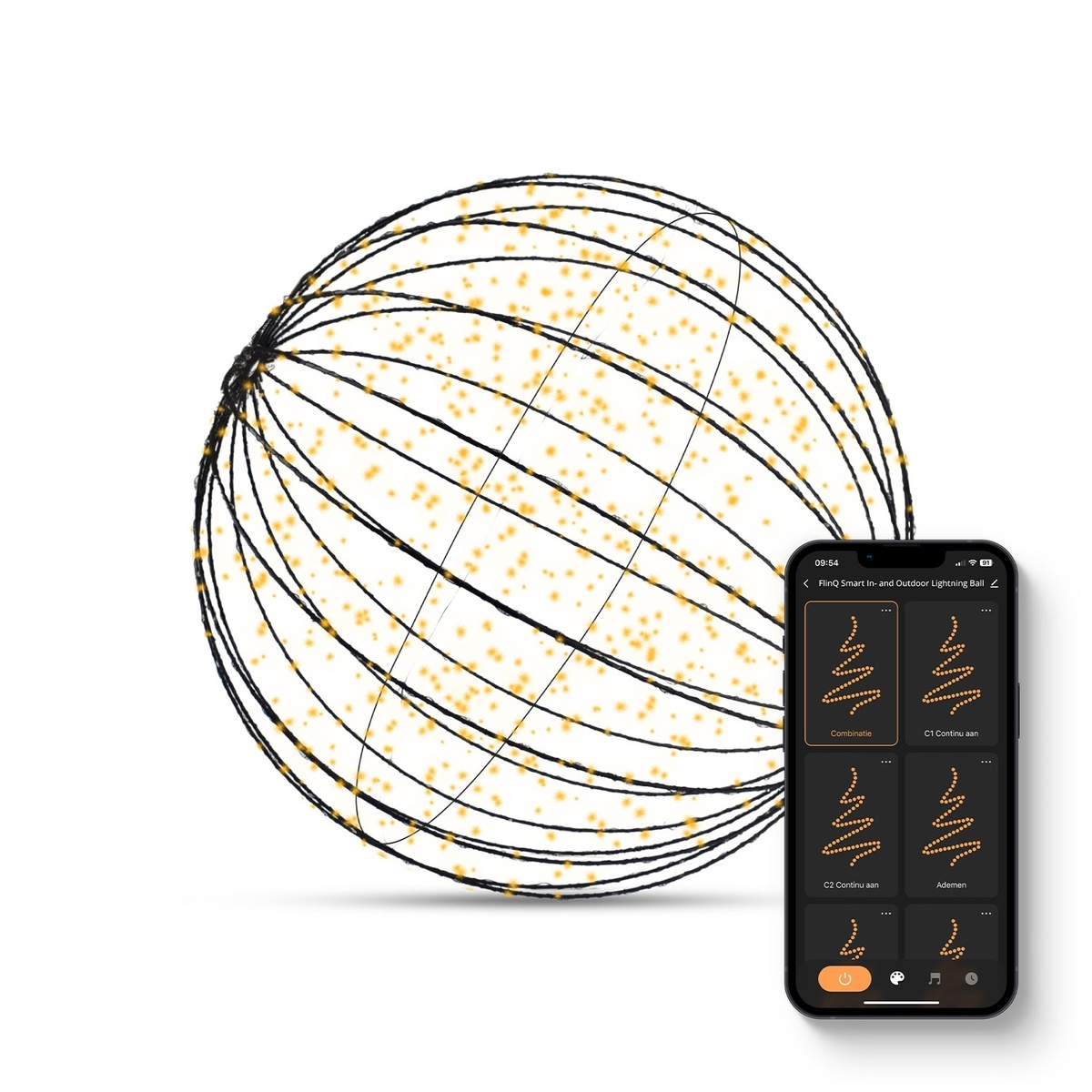 Met de gratis FlinQ-app heeft u volledige controle over de lichtbol. Stel persoonlijke lichtschema’s in, plan timers of laat de verlichting reageren op uw favoriete muziek via Spotify. Bovendien is de lichtbol compatibel met Alexa en Google Assistant, zodat u deze eenvoudig met uw stem kunt bedienen. Uw verlichting aanpassen was nog nooit zo eenvoudig en plezierig.