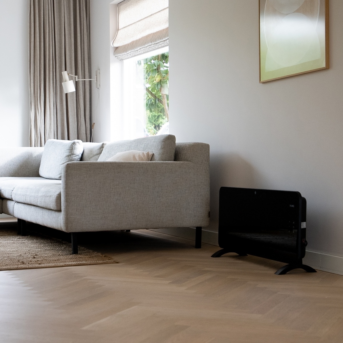 De FlinQ Slimme Paneelverwarming is niet alleen effectief, maar ook veilig. Met een ingebouwde omvalbeveiliging schakelt de verwarmer automatisch uit om kinderen en huisdieren te beschermen. Bovendien heeft het een kinderbeveiliging om onbedoeld gebruik te voorkomen.