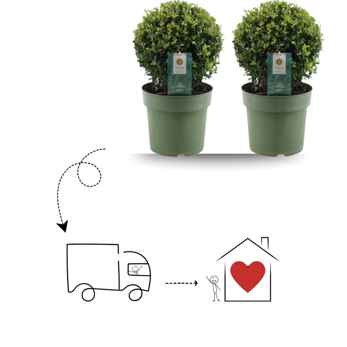 Op zoek naar een stijlvolle groenblijver die het hele jaar door structuur geeft? De Japanse hulst bolvorm (Ilex crenata 'Jenny') is een sterk buxusalternatief – geleverd als set van 2 voor een direct symmetrisch effect bij entree of terras.