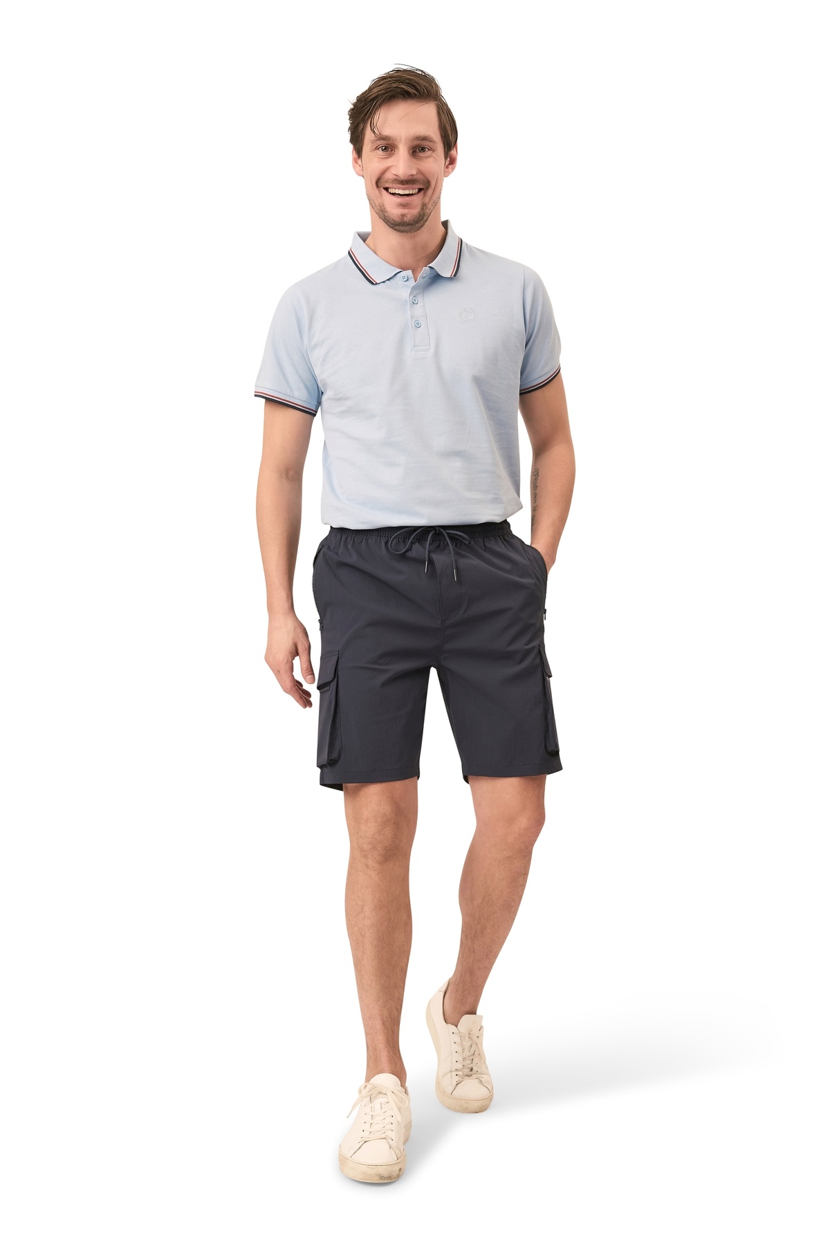 De cargoshort van Mario Russo is gemaakt van 100% hoogwaardig nylon. Dit sterke en lichte materiaal is slijtvast, flexibel en sneldrogend, waardoor hij ideaal is voor actief gebruik. Dankzij de elastische tailleband met trekkoord sluit de short perfect aan op de heupen en biedt hij optimaal draagcomfort. Daarnaast zorgt de ademende stof ervoor dat u koel en comfortabel blijft, zelfs op warme dagen. Na een wasbeurt op 30 graden behoudt de short zijn perfecte pasvorm.