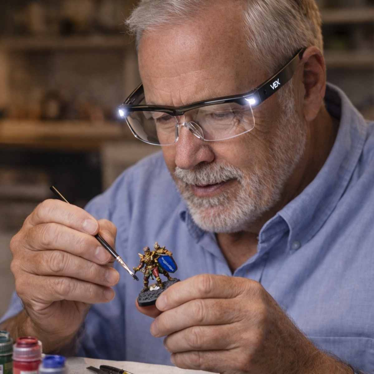 Met deze vergrootglas bril heeft u uw handen volledig vrij. Of u nu aan het knutselen bent, modelbouw doet of kleine reparaties uitvoert: deze bril maakt het makkelijker én comfortabeler. De ingebouwde Ledverlichting zorgt voor extra helderheid, ook bij weinig licht.