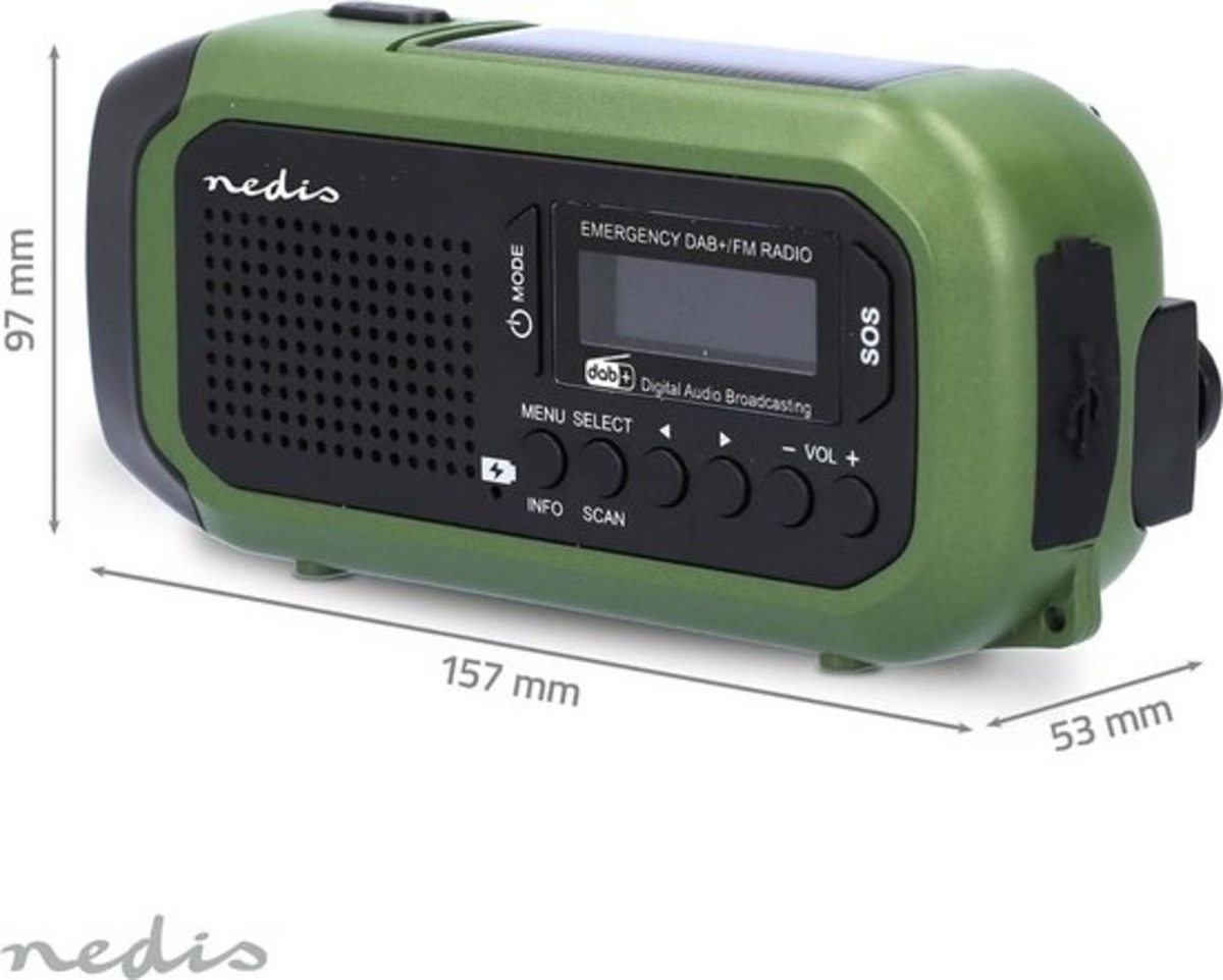 De Nedis draagbare noodradio met DAB+/FM, zonnepaneel en handdynamo is de ultieme alles-in-één oplossing voor outdoor avonturiers en noodsituaties. Met diverse stroomopties, een ingebouwde powerbank en handige verlichting bent u altijd voorbereid.
