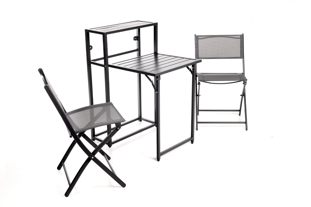 Heeft u een beperkte buitenruimte? Geen probleem! Dankzij het opvouwbare ontwerp bergt u de set, bestaande uit één tafel en twee stoelen, in een handomdraai op. Zo houdt u uw balkon of terras overzichtelijk zonder in te leveren op comfort.