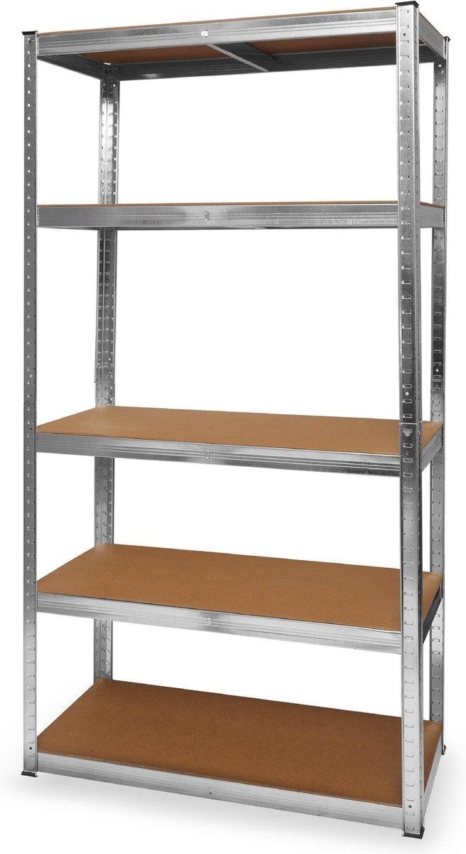 Dankzij zijn degelijke constructie van metaal in combinatie met spaanplaat schappen is de stellingkast erg sterk. Elke schap kan tot wel 175 kg dragen, wat betekent dat het opbergrek een totale draagkracht van 875 kg heeft.
