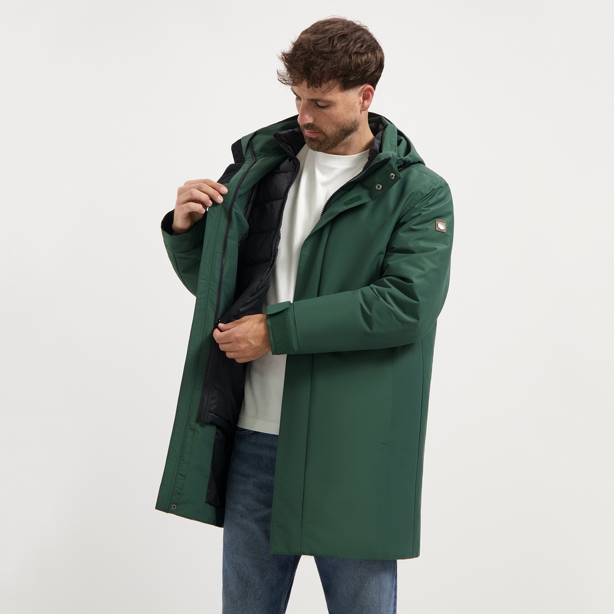 De binnenjas is korter van lengte, licht gewatteerd en voorzien van handige steekzakken met rits. Perfect als tussenjas voor de herfst of droge winterdagen. Samen met de buitenjas vormt hij een warme en betrouwbare bescherming tegen gure kou en regen. Bovendien is de jas PFAS-vrij geproduceerd, een bewuste keuze voor duurzaamheid.
