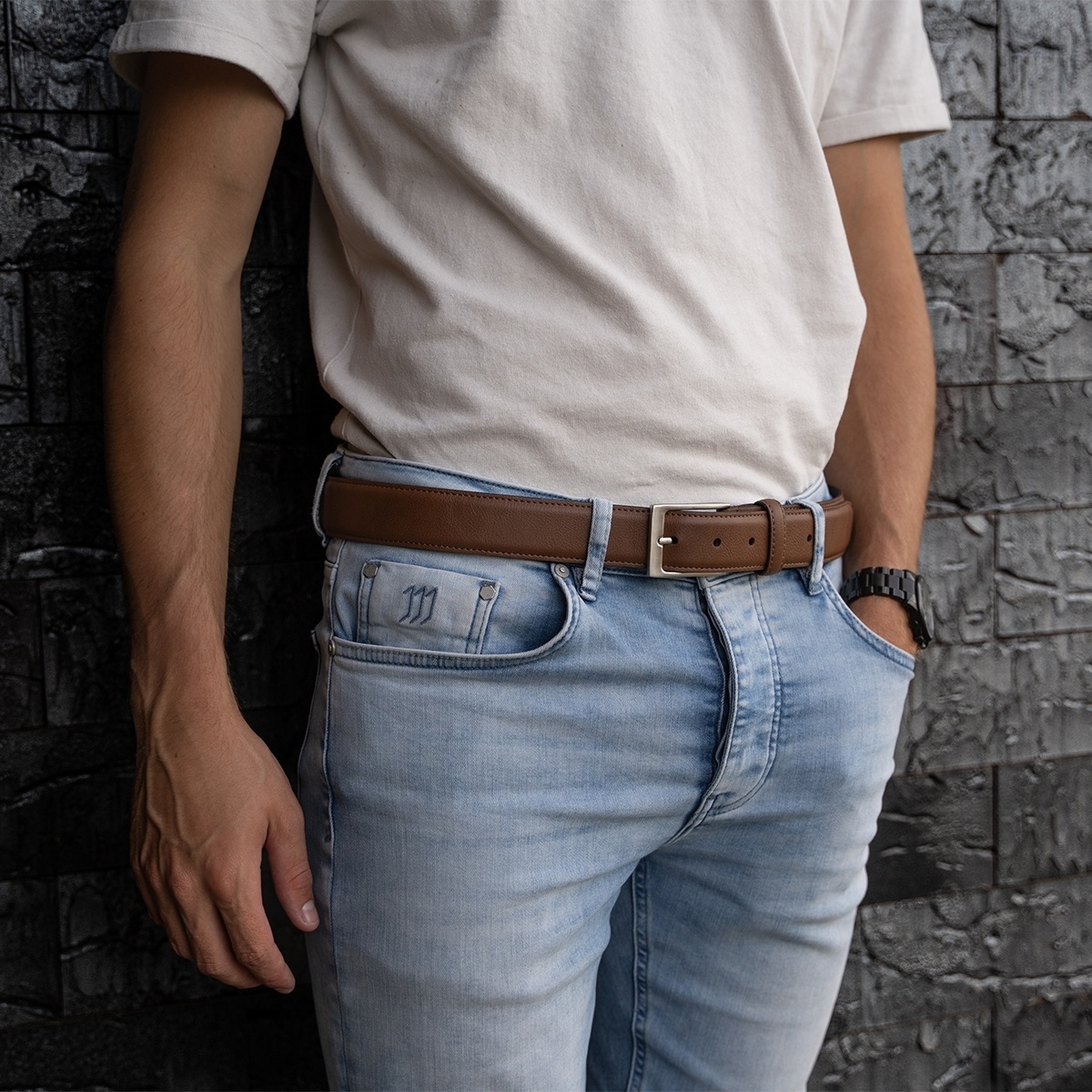 Ervaar tijdloze klasse met onze stijlvolle lederen riem. Gemaakt van soepel, glad leer, is hij ook beschikbaar in zwart, cognac en donkerbruin. De zilveren details voegen een vleugje verfijning toe aan elke look.